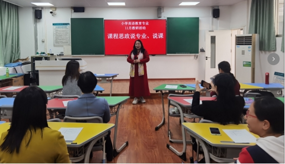 11月24日下午,基础教育学院小学英语教育教研室说专业·说课比赛在燕岭校区教学楼604、605室举行。学校教学督导李青老师受邀出席。小学英语教育专业专任教师参加本次活动。本次活动的开展是贯彻落实立德树人根本任务、积极顺应数字经济时代发展和专业群建设发展形势和相应我校“五金”新基建工作的一项重要举措。活动由教研室主任何婴主持。
